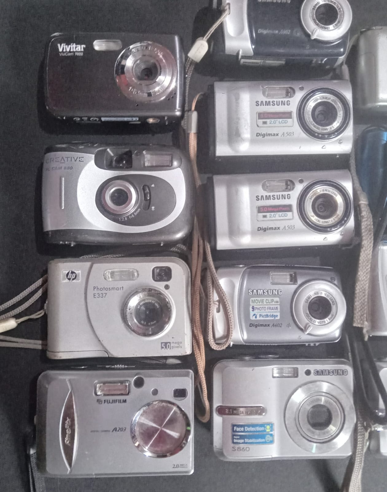 Tenemos en stock muchas cámaras que podemos vender entre 40 y 50 mil colones, con marcas diversas: Samsung, HP, Polaroid, Benq, Kodak, Optio, Olympus, etc